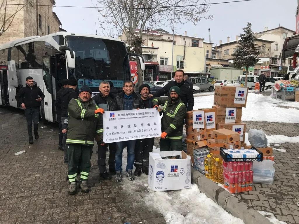 地震發(fā)生后,哈電集團(tuán)國際公司土耳其伊斯坦布爾商務(wù)代表處聯(lián)合土耳其紙板廠項(xiàng)目部、澤塔斯運(yùn)維項(xiàng)目部,克服地震帶來的不利影響,積極統(tǒng)籌各方資源,為抵達(dá)伊斯坦布爾的中國藍(lán)天救援隊(duì)準(zhǔn)備了通勤巴士和必要物資,同時(shí)各項(xiàng)目部員工積極為當(dāng)?shù)貫?zāi)民募集物資并提供幫助。